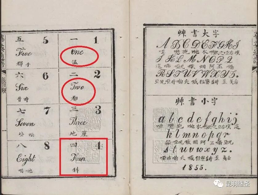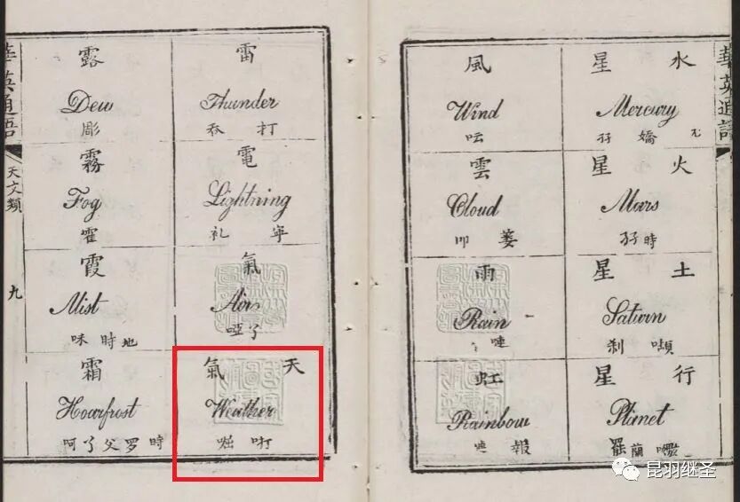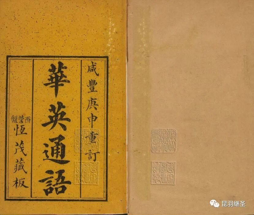 上图来自1860年清咸丰庚申重订版的《华英通语》,子卿編著,清人子芳重订,现藏于哈佛大学燕京图书馆(英文翻译却是:哈佛大学燕京学院汉和【中日】图书馆)。