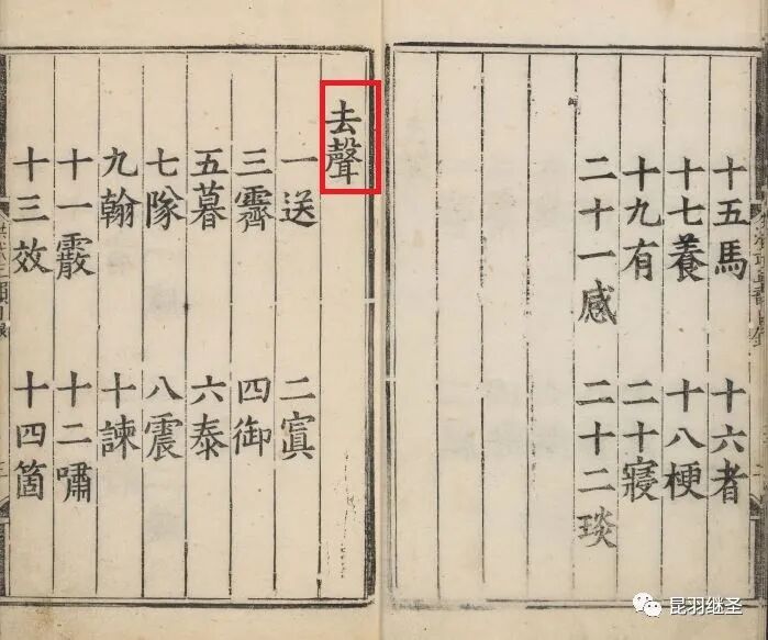 洪武正韵目录,分为平声、上声、去声、入声。平声者哀而妄,上声者厉而举,去声者清而远,入声者直而促。