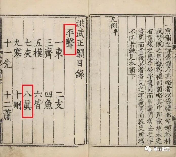 洪武正韵目录,第八个即为“真”韵,平声。