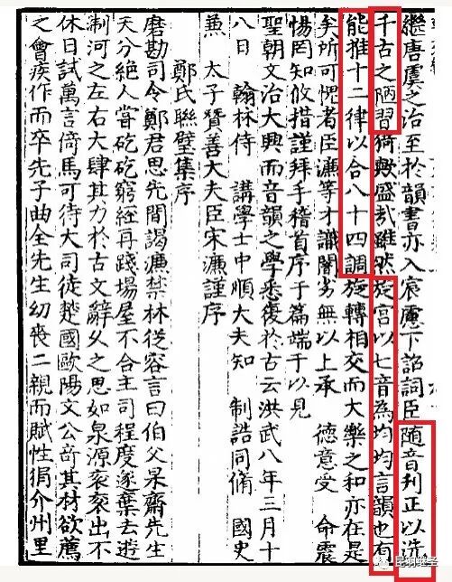 今大明初立,圣人在上,车同轨、书同文,凡是礼乐文物,皆遵往圣之制,其风赫然有如唐虞之治。韵书由词臣随音刊正,以洗千古之陋习。旋宫以七音为韵,能推十二律以合八十四调,旋转相交,大乐之和亦在此理。