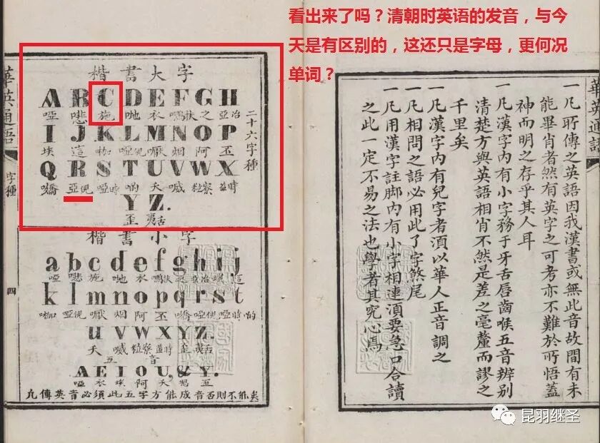 正因为英语书面语言体系是建立在《康熙字典》上,是按照汉语字词一个个创造单词、对应词义的,而彼时的发音又是参照中国南方方言(如两广福建等),所以就会很自然地发现: