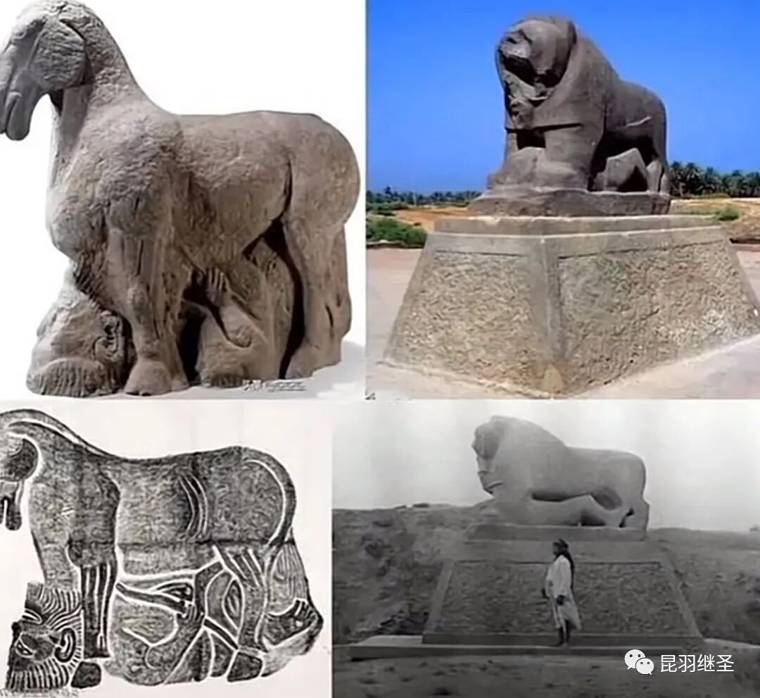 图一,左边的是西汉的雕塑,距今2200年左右;右边的是古巴比伦的雕塑,距今大约4000年。