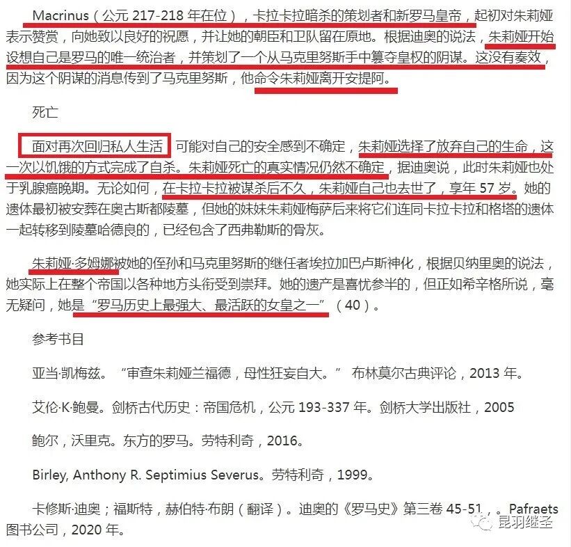 朱莉娅·多姆娜最终是绝食而亡,主动不吃任何东西;贾南风最终是被金屑酒毒杀,强行喂食东西……