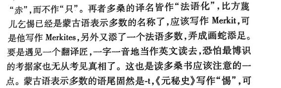 其使用的《元朝秘史》畏吾体蒙古文原文的流传元代“脱卜赤颜”早已不存。并且,《元朝秘史》不是史书,而是类似历史演义性质的文献,与蒙古的金册国史不可同日而语。