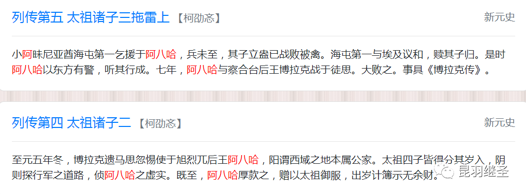 有意思的是,元代从未出现过“阿八哈”,却在清代通过《新元史》突然出生了。