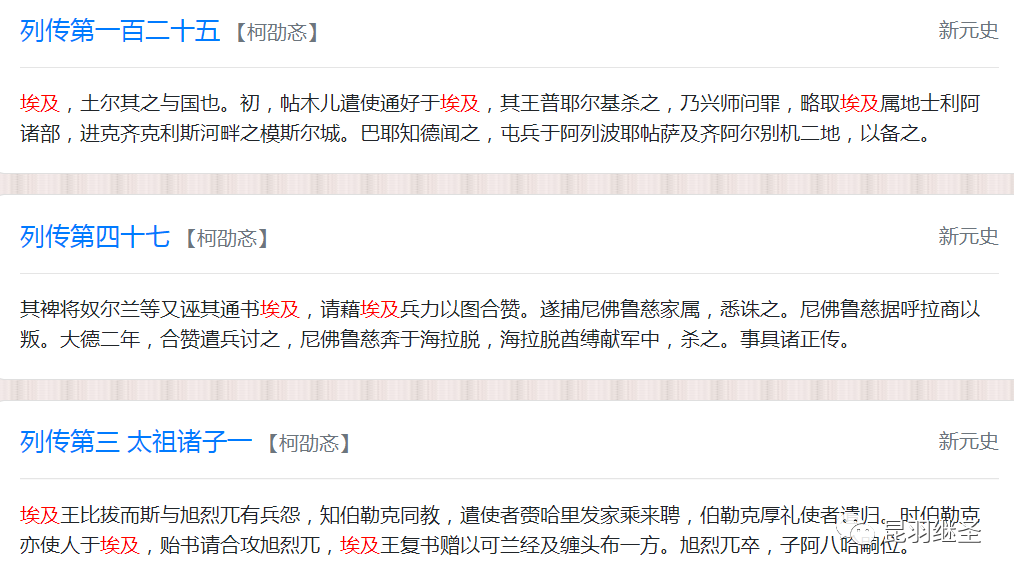 《新元史》·列传第一百五十三 外国八,还频繁地出现埃及字眼,甚至提到了所谓的阿八哈传。
