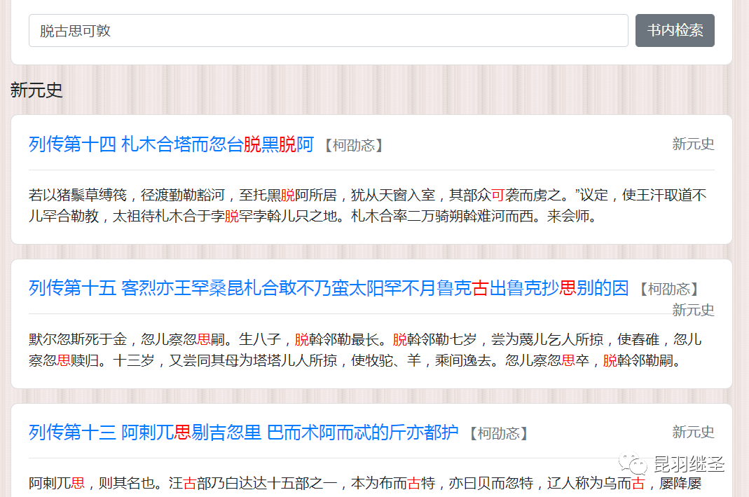 更有意思的是,这个继母“脱古思可敦”在《新元史》也查不到任何信息。可是,她在现行的西史中却存在。