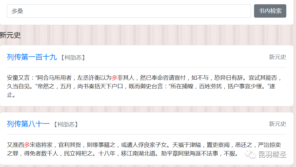 通过检索发现,无论是输入“多桑”,还是“多桑蒙古史”关键词,都查不到相关信息。