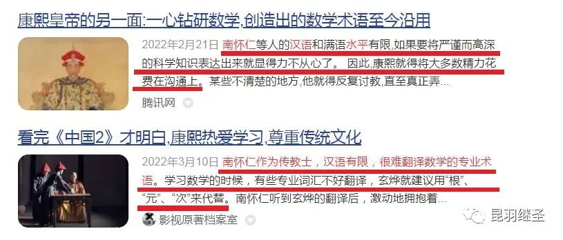 可是,另一方面,却又有人指出,南怀仁的汉语和满语水平有限,很难表达严谨而高深的科学知识,在翻译数学专业术语力不从心,还得玄烨亲自出马,花费大量的精力在沟通上,并建议用“根”‘、“元”、“次”来代替。