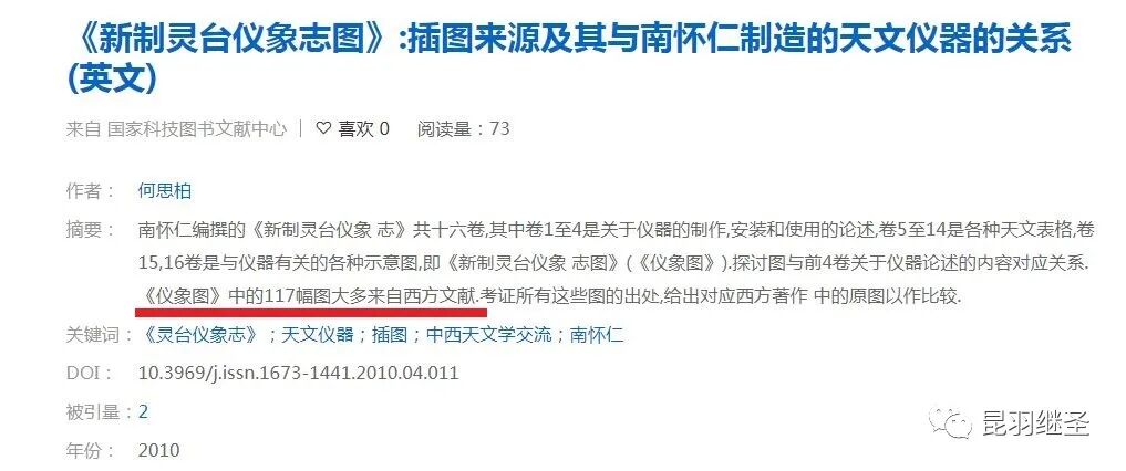 有位名叫“何思柏”的学者写过一篇论文,考证所谓《新制灵台仪象志图》的插图(共117幅)大多来自西方文献,顺利补上了一环,两环相扣,让人一时无法窥得真貌。
