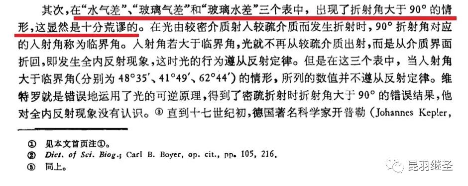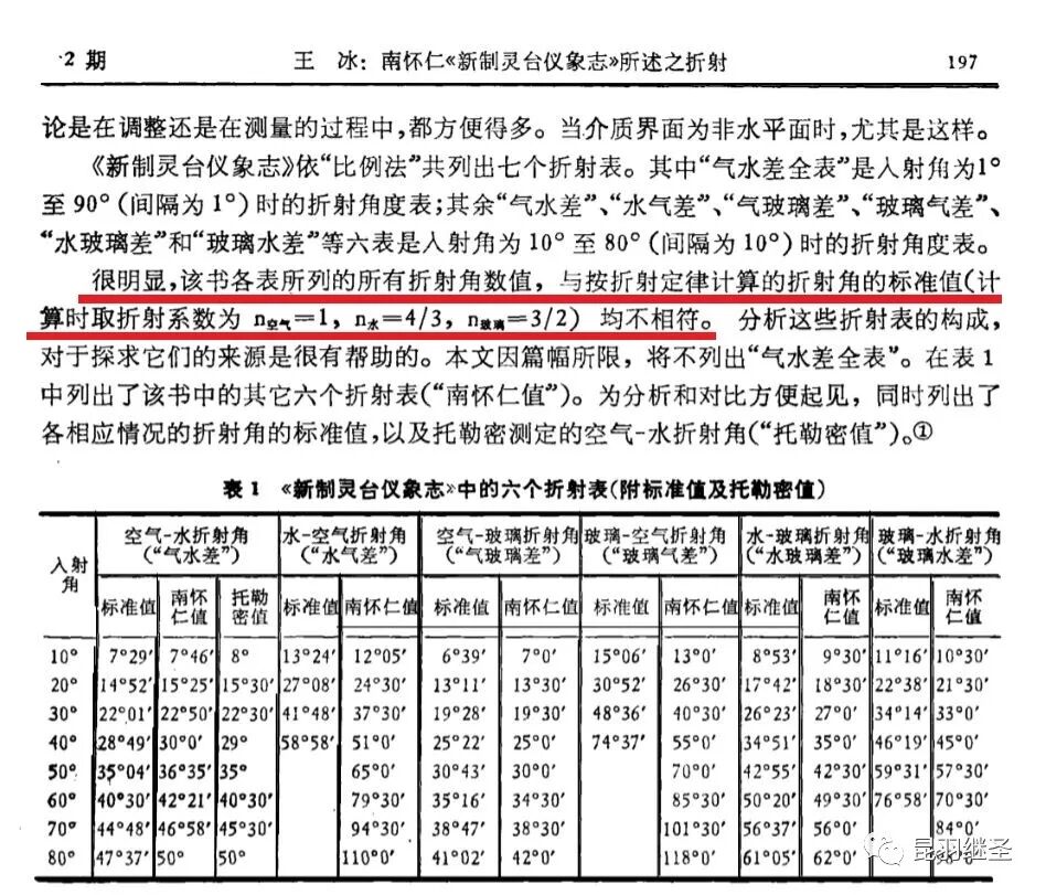 根据王冰的对比研究,原来,所谓的《新制灵台仪象志》中的光的折射现象规律,是托勒密之后至十七世纪初以前的认识,并且,该书在阐述介质的密疏时出现了错误,“凡其所差,以天顶线为主”、“皆以光离天顶之远近为主”的说法也不严格。