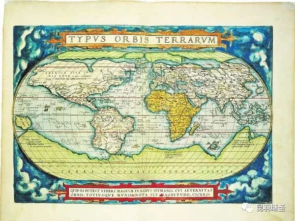 1570年,荷兰人绘制了一幅与上图几乎一模一样的地图,出自《世界天体剧场地图》(Theatrum Orbis Terrarum)。一个比利时的,一个荷兰的,成了双胞胎,还真是挺神奇的。