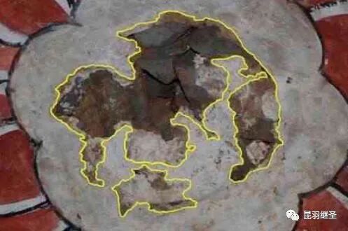 注意看中间红圈部分,这里有一根铁棍曾将一件木制物品固定于此。