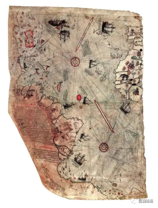 1929年,土耳其史学家宣称发现了一张16世纪绘制的“皮里雷斯地图”。据说,这幅地图是奥斯曼王朝的皮里雷斯海军上将于1513年绘制的一幅世界地图,保存至今已残缺不全。