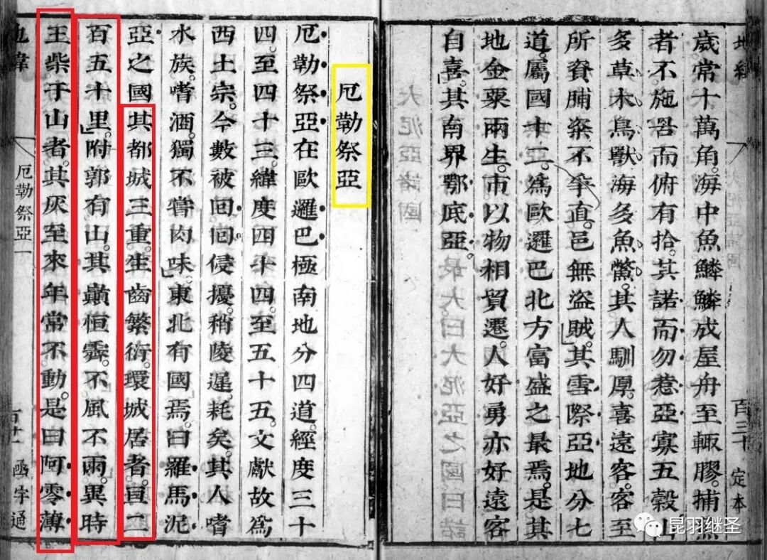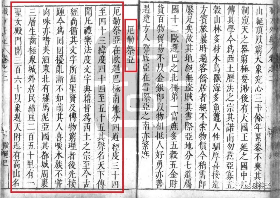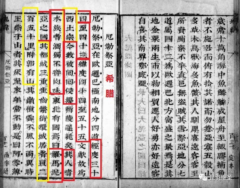 如上图所示,被篡改过的《函宇通》中有关希腊(厄勒祭亚)的记载: