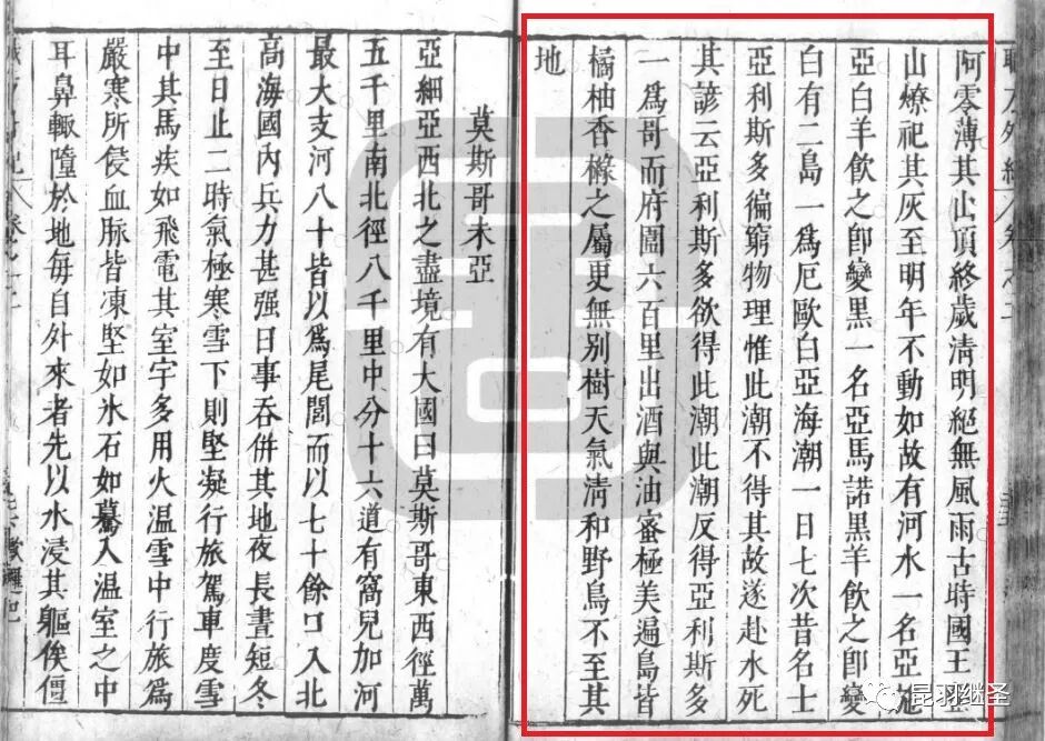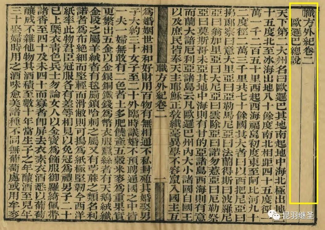再对比了一下1623版的《职方外纪》,内容与1844版是一样的,如下: