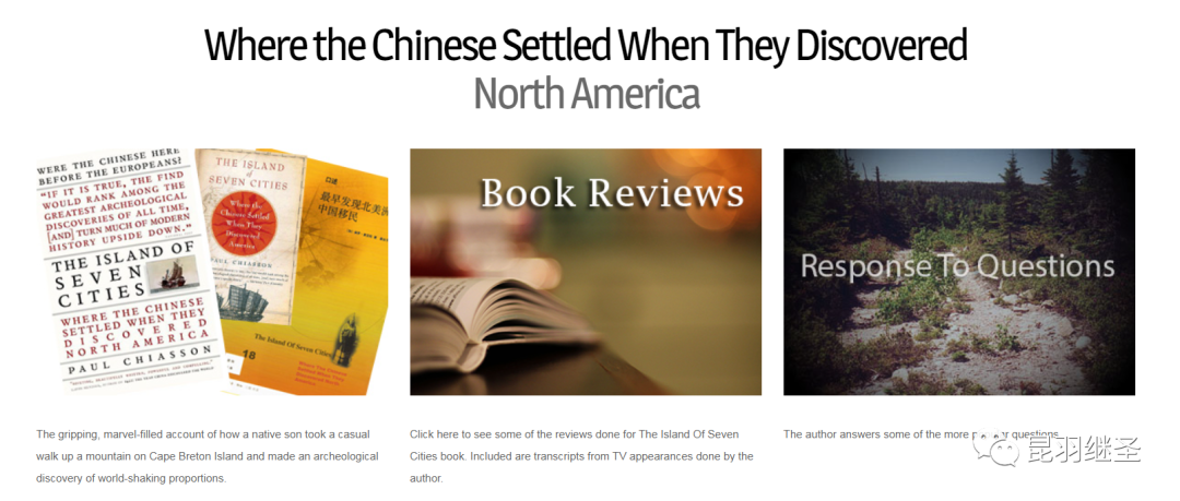 2002年夏,耶鲁大学建筑学家保罗·夏亚松(Paul Chiasson)在加拿大的布雷顿角岛发现了一条既宽阔又平整的古道。于是,遍查历史档案和典籍,力图找到有关这条古道的记载。他以田野调查与文献资料考证相结合,推理出惊人的结论,即远在欧洲探险家卡伯特到达该岛之前,中国人已在那里建立了颇具规模的移民区。作者以令人信服的考证,指出了北美原住民米克茂人的文化与中国文化的渊源。