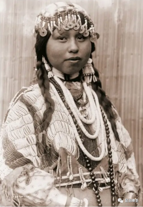 如下所示,美洲土著的穿着打扮,注意头上所戴的铜钱。这个风俗据说是从明代开始的,与郑和家乡云南的苗族、彝族很像,苗族、彝族都有把象征财富的钱财当作头饰的风俗。