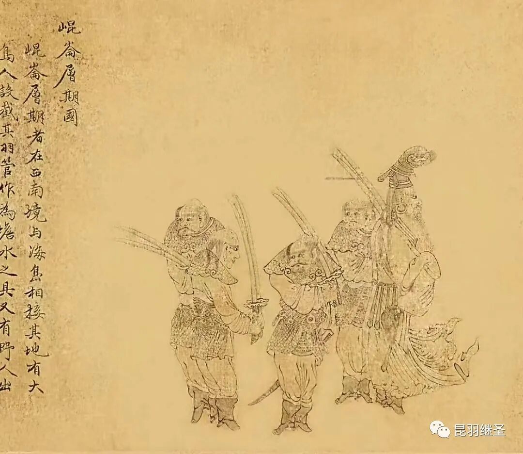 北宋李公麟《职贡图真迹册八帧》中有一幅图为“崐崙层期国”,其题记如下: