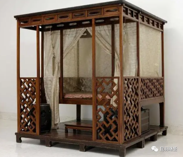 之所以称架子床“最科学”,是因为它有顶有柱,加上帷帐,便宛如一间独立的小屋,可以藏风、聚气、保暖、防蚊,此外,架子床四周还设有围栏,压根不用担心睡着时一不小心翻身掉下去,十分有安全感。
