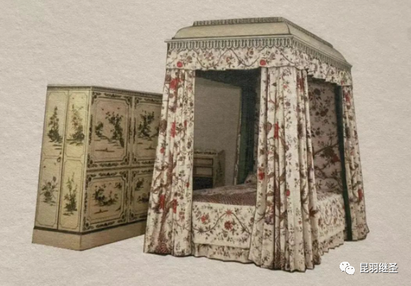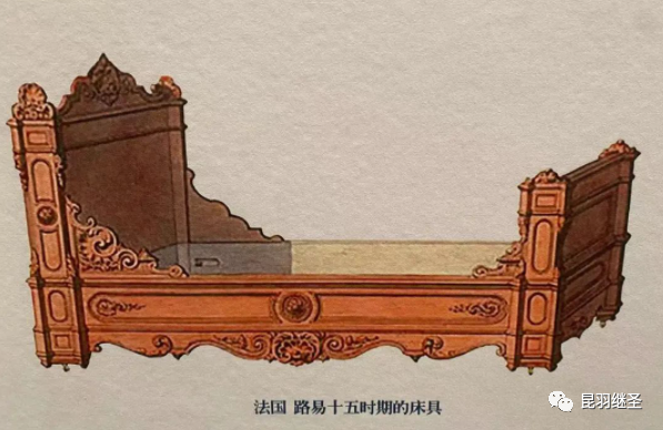 看出修改和变化路径来了吗?先是模仿四柱架子床,然后去掉两根柱子,最后再把四根柱子一起去掉,就有了路易十五时期的床具