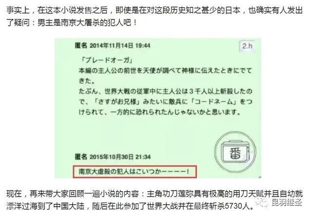 这本小说发售之后,即使是在对南京大屠杀这段历史知之甚少的日本,也有人发出了这样的疑问:男主是南京大屠杀的犯人吧!此时,国内蓦然惊觉,这本书才被举报,遭全网封杀……