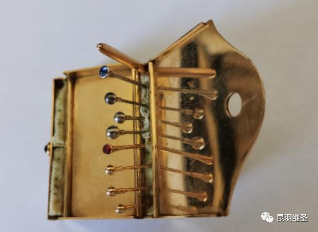 6、德莫朗自制的中医针灸金针套组(镶嵌红蓝宝石)。