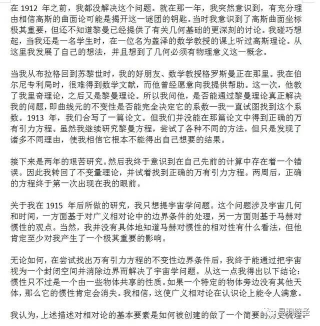 程碧波教授参考了《狭义与广义相对论浅说》等资料后分析如下: