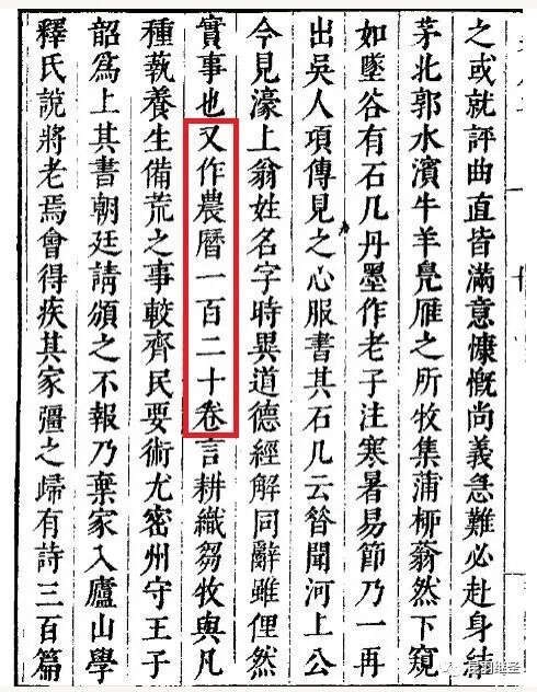 [北宋] 晁补之 撰《济北晁先生鷄肋集》(四部丛刊景明本)卷第六十三 “卷第六十三”有云:“……又作农历一百二十卷,言耕织刍牧与凡种蓺养生备荒之事,较齐民要术尤密。”