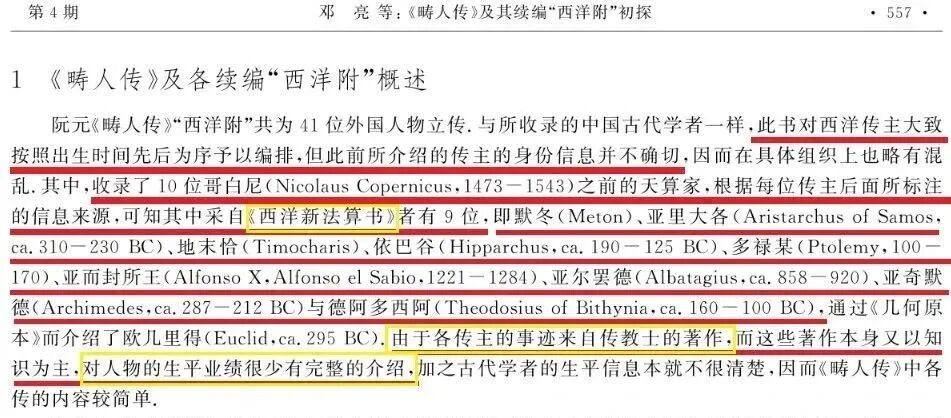 《畴人传》一书收录了哥白尼之前的十位西方天算家,其中有九位采录自《西洋新法算书》。这些所谓的西方天算家的事迹主要出自传教士的著作,但这些著作只讲知识,对相关人物的生平事迹鲜少有完整的介绍。