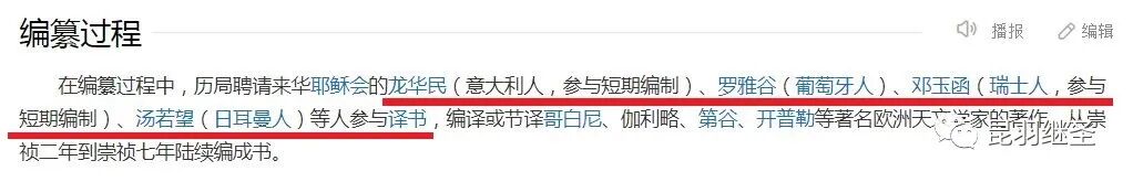 徐光启主编,变成了徐光启等编撰和翻译,多了个翻译的“译”。