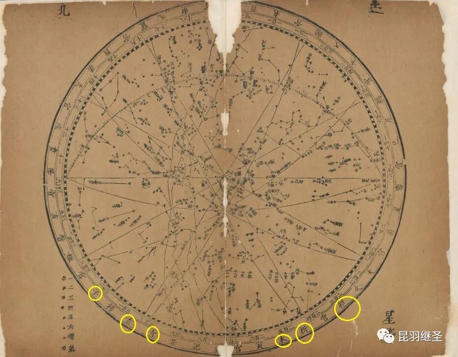 这张南图亦是如此,仔细看两道黑色线条圆圈中的文字部分。