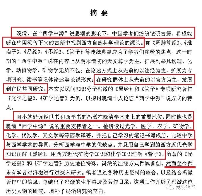 笔者在中国科学技术大学陈珂的一篇硕士学位论文《冯澂的〈墨经〉研究与晚清“西学中源”说》摘要中发现了一些有趣的记述。