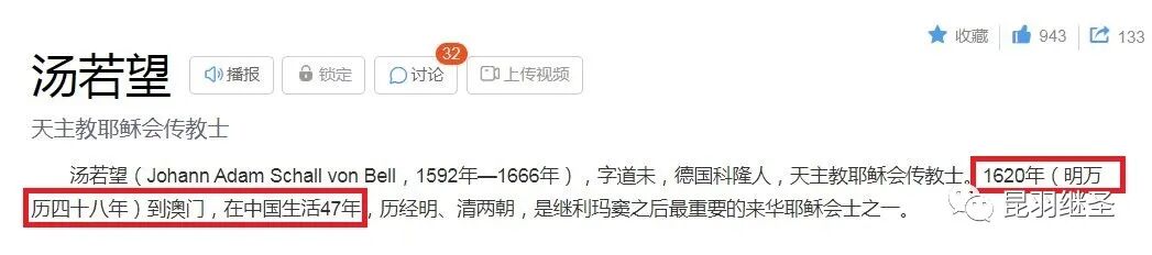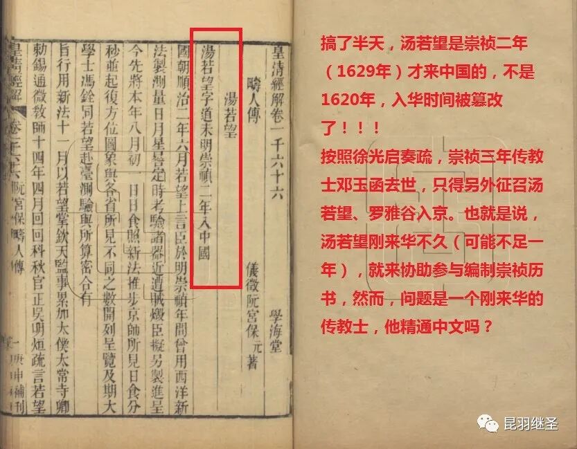 但是,《畴人传》中记载的却是,汤若望是崇祯二年(1629年)来中国,并不是1620年。显然,此人入华时间被篡改了。