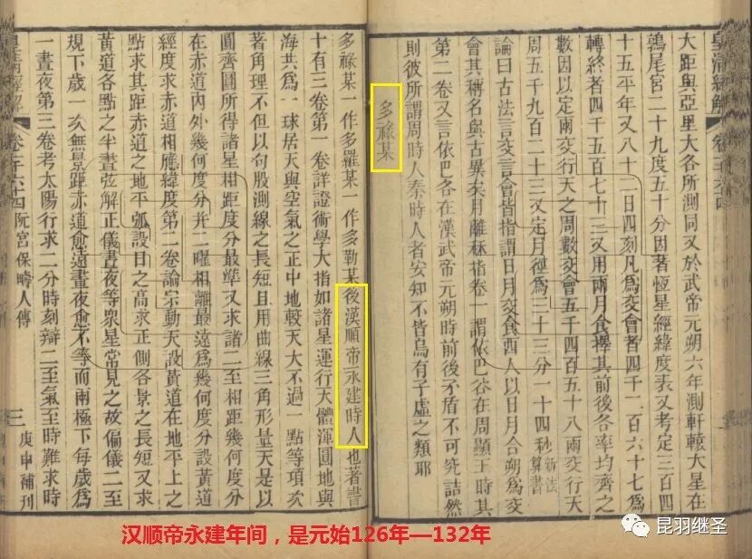 《畴人传》辑录的传教士资料显示,多禄某(托勒密)是后汉(东汉)顺帝永建时人。永建,是东汉皇帝汉顺帝刘保的第一个年号,从元始126年-132年,共计七年。