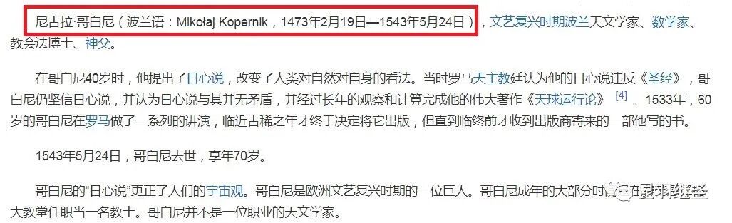 再来看西史叙事中的哥白尼,其生卒年竟然是1473-1543年。两者竟然相差八九百年,都快一千年了!