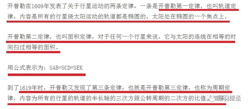 但即便如此,那时的开普勒也只是与椭圆面积、逐日平行之度相关,具体的三大定律(轨道、周期、面积)更详细的内容有吗?没有。