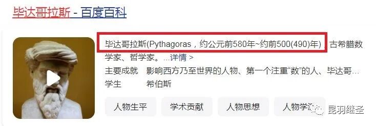 毕达哥拉斯(Pythagoras),约元始前580年-约前500(490)年。哟,毕达哥拉斯原来比佛教创始人大了足足15岁。