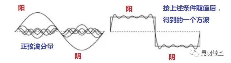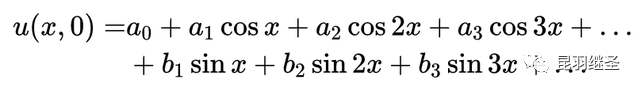 虽然正弦和余弦曲线是连续的,其曲线的单独叠加无法表示方波,但在无限项叠加的情况下,上述初始条件可以表示成无穷级数的形式:
