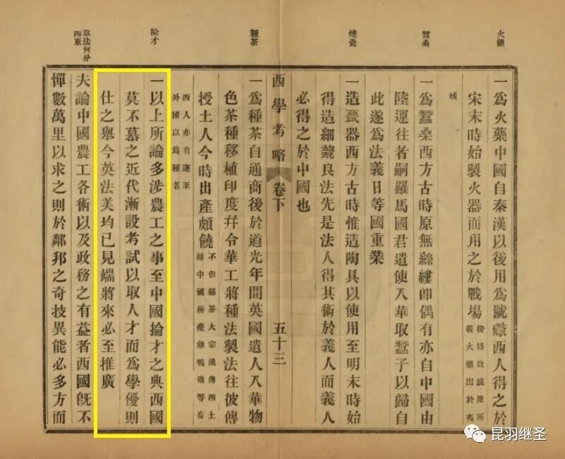 “一以上所论多涉农工之事(都是从中国传过去的),至中国掄(抡,选拔)才之典,西国莫不慕之。近代渐设考试,以取人才,而为学优则仕之举,英法美均已见端,将来必至推广。”