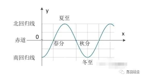 五行是源于天文的正弦规律,若以X轴为时间,Y轴为纬度,则太阳在地球上投影的运行轨迹就是正弦曲线。