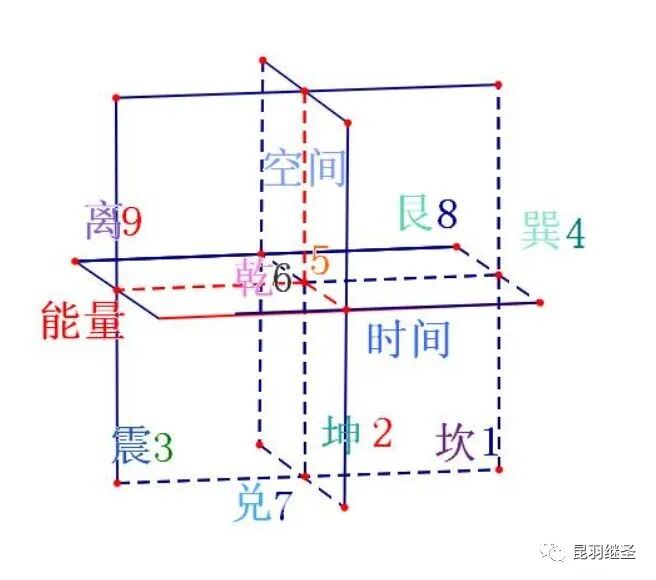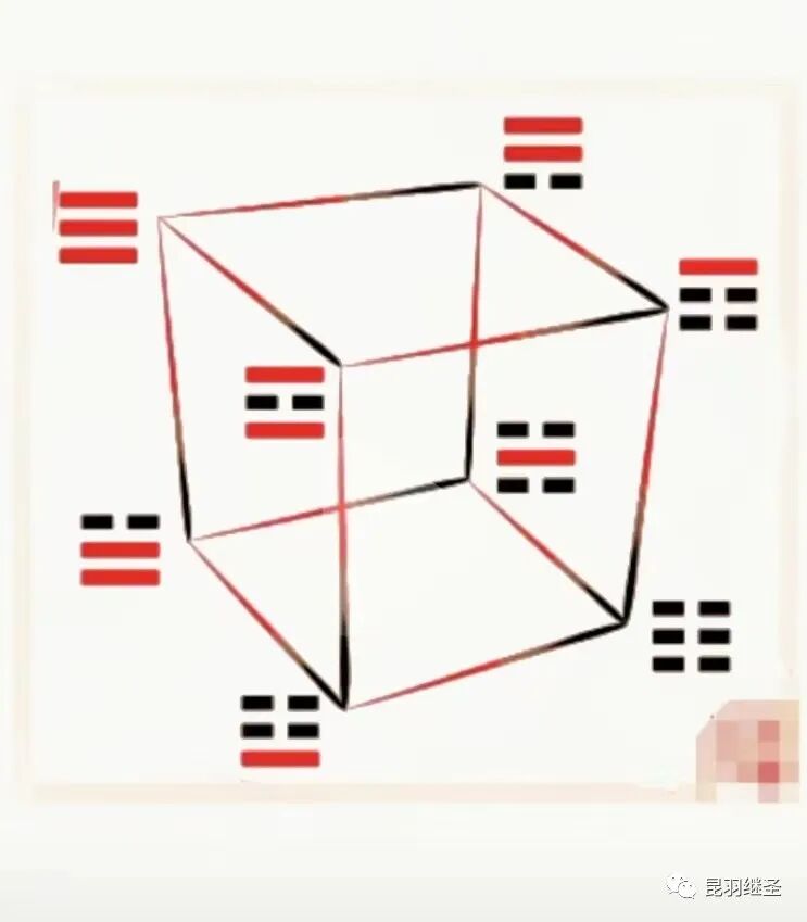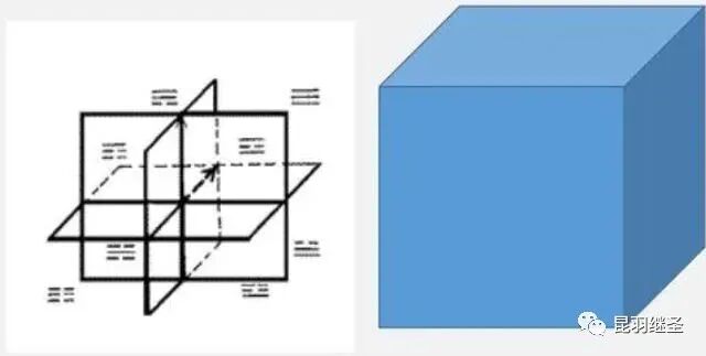 然后,八卦的每一个卦象,对应上中下三爻,分别可以表达一个三维信息,而这个三维卦象除了可以表达空间信息外,还可以同时表达第四维度“时间”方面的信息。