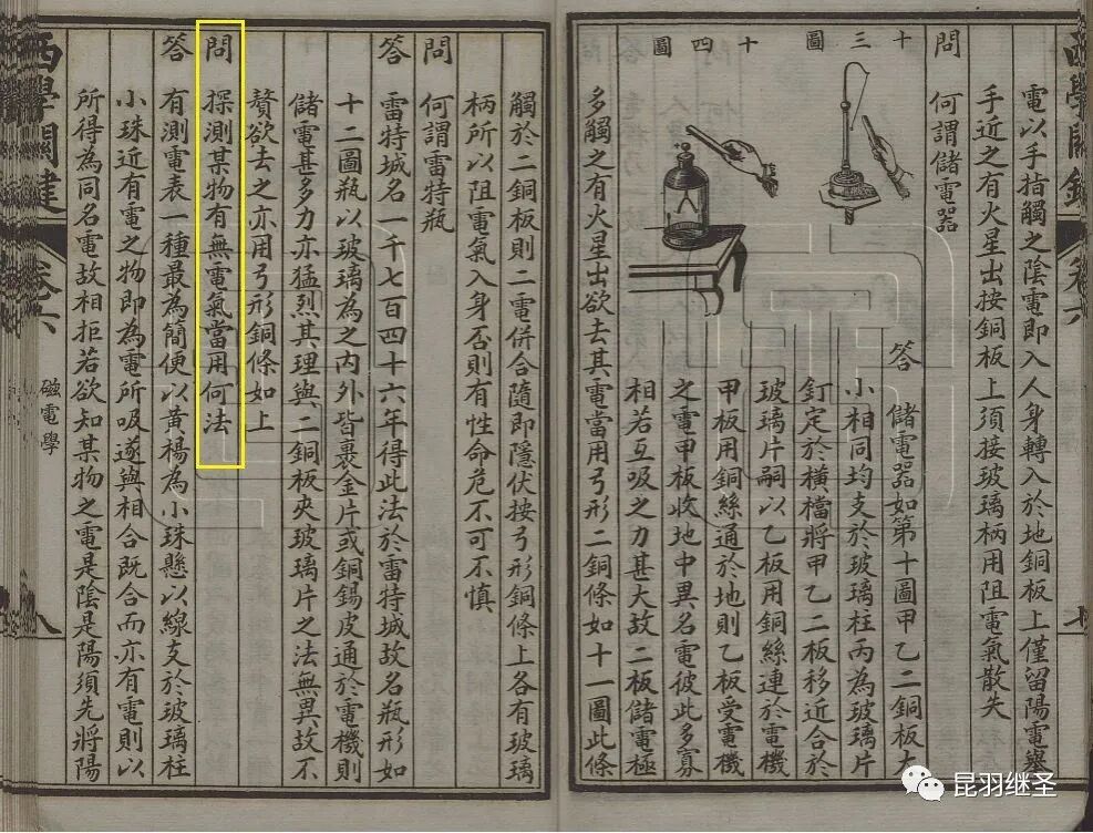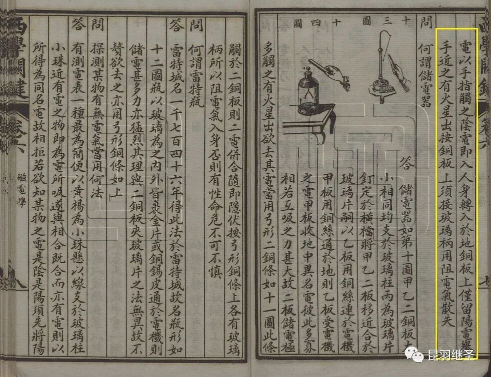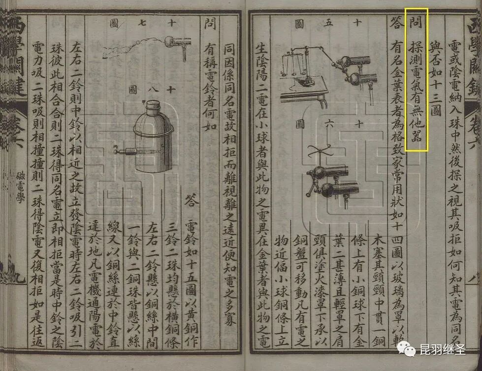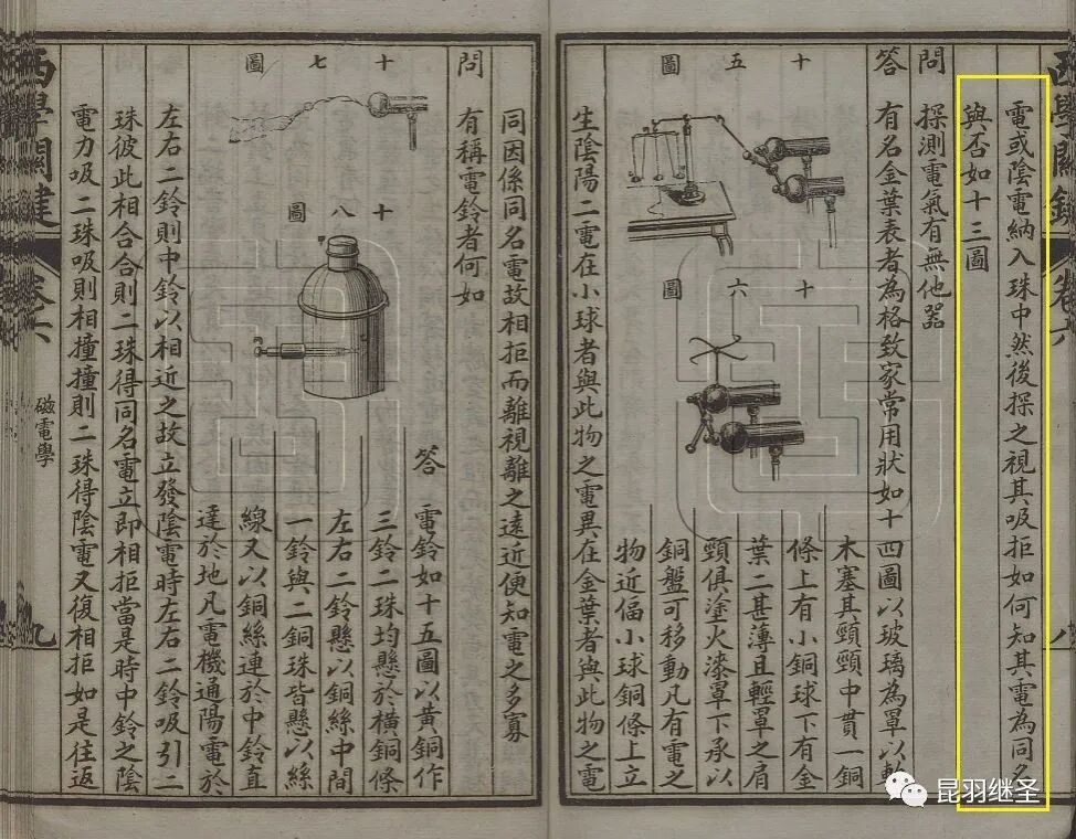 《西学关键》“卷六,磁电学,二十”记载的却是: