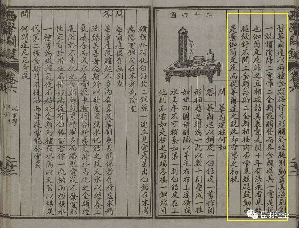 既然西方声称,是伏特发明了储电器,那为什么1903年翻译自英国的《西学关键》没有载明这是伏特的发明呢?这储电器与伏特有半毛钱关系吗?