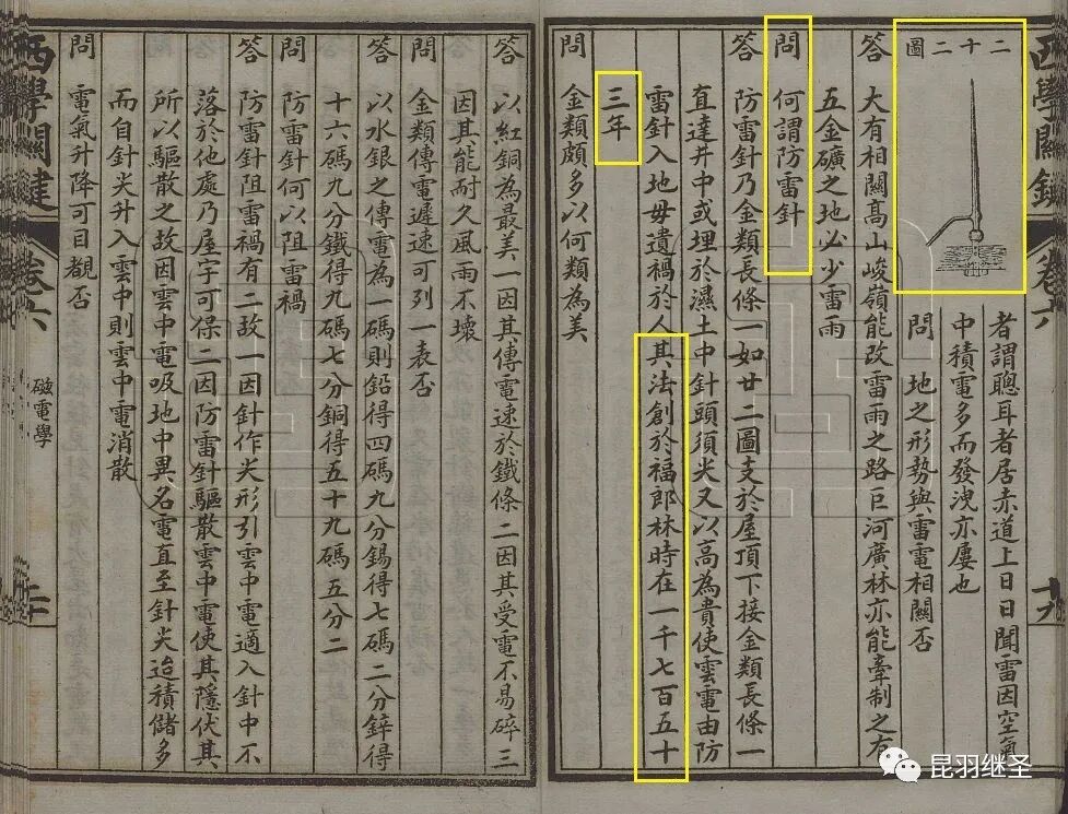 而且,按照《西学关键》的记载,避雷针还有其他样式,发明者还有梅生。