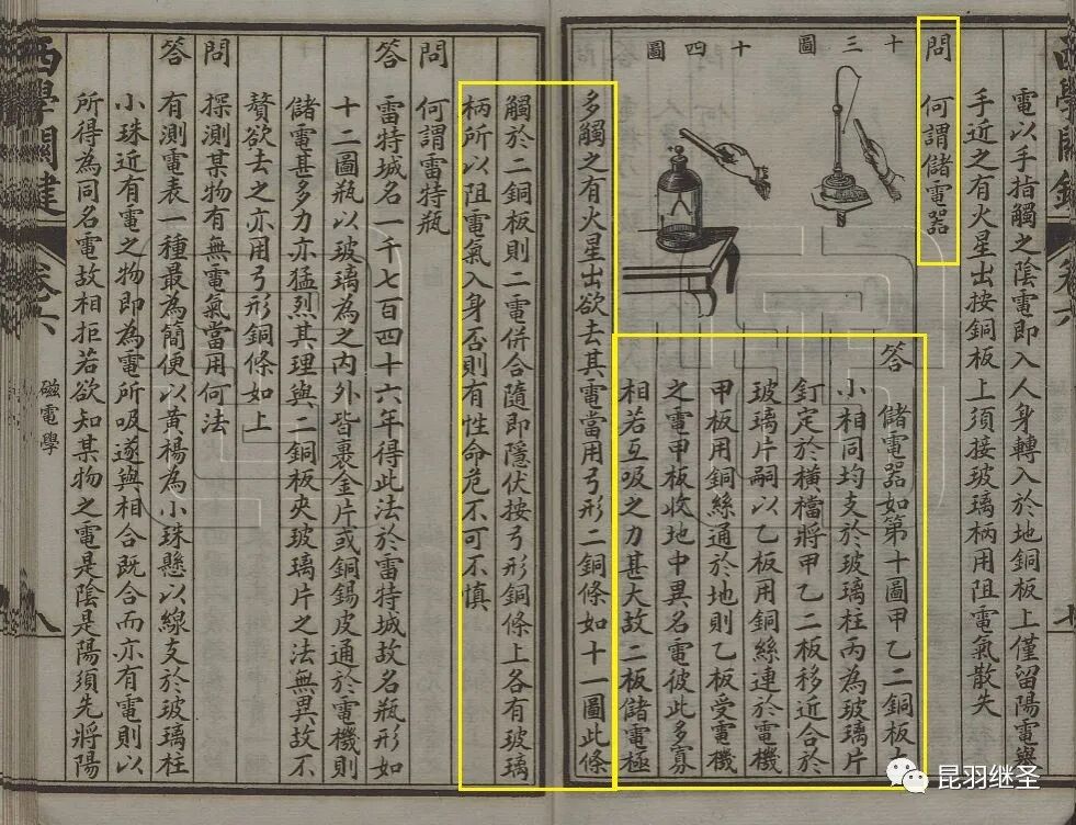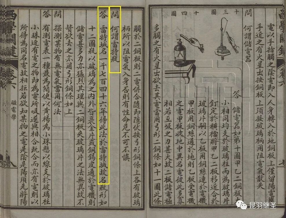 对比一下光绪二十九年(1903年)提到的雷特瓶,与现行西史中的莱顿瓶。