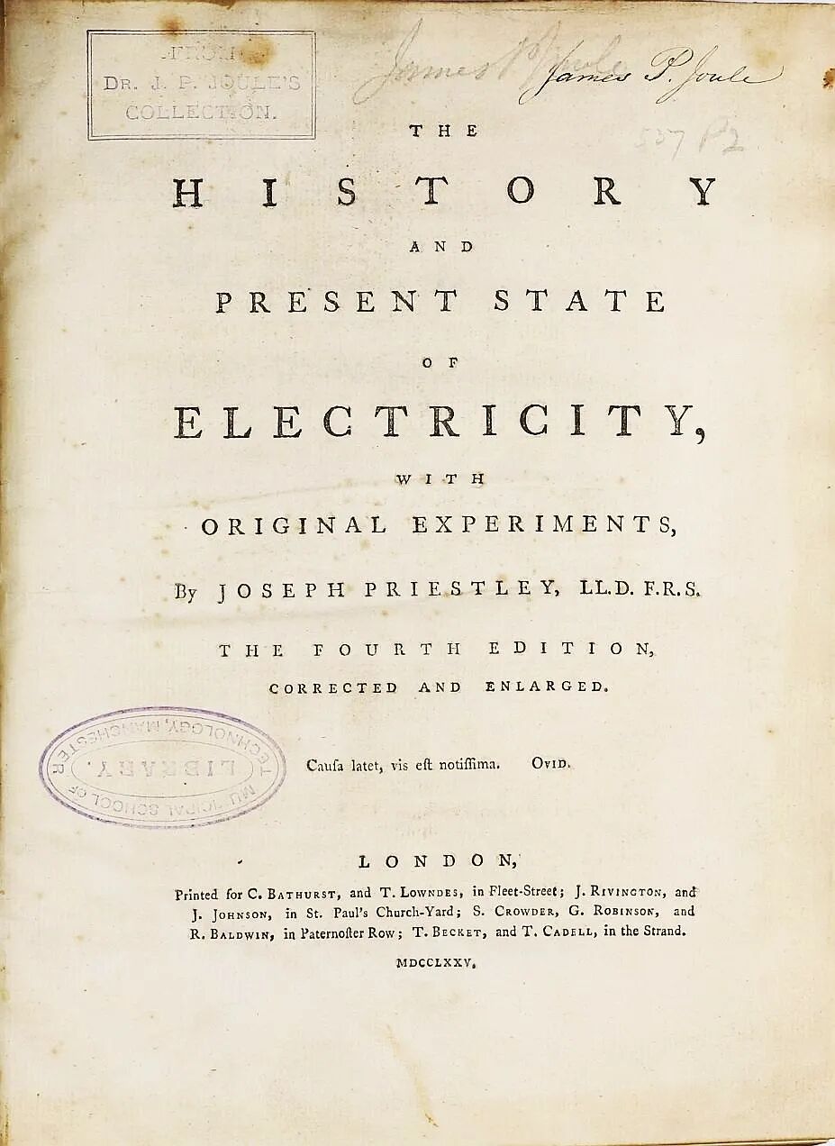 十五年后,这个实验再次出现在英国化学家约瑟夫·普里斯特利 (Joseph Priestley)于1767 年出版的《电的历史和现状》(History and Present Status of Electricity)一书中。普里斯特利声称,他是从富兰克林本人那里听说了风筝和钥匙实验,该实验发生在1752年6月。