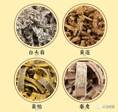 组成:白头翁二两(15g)、黄柏三两(12g)、黄连三两(4~6g)、秦皮三两(12g)