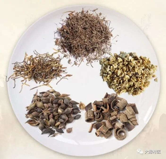 方歌:新加香蕾朴银翘,扁豆鲜花一起熬;