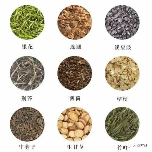 方解:温者,火之气也,自口鼻而入,内通于肺,所以说“温邪上受,首先犯肺。”肺与皮毛相合,所以温病初起,多见发热,头痛,微恶风寒,汗出不畅或无汗。肺受温热之邪,上熏口咽,故口渴、咽痛。肺失清肃,故咳嗽。治当辛凉解表,透邪泄肺,使热清毒解。吴氏宗《素问·至真要大论》:“风淫于内,治以辛凉,佐以苦甘”之训,综合前人治温之意,用银花、连翘为君药,既有辛凉透邪清热之效,又具芳香辟秽解毒之功。臣药有二,一是辛温的荆芥穗、豆豉,助君药开皮毛而逐邪,桔梗宣肺利咽,甘草清热解毒,竹叶清上焦热,芦根清热生津,皆佐使药。
